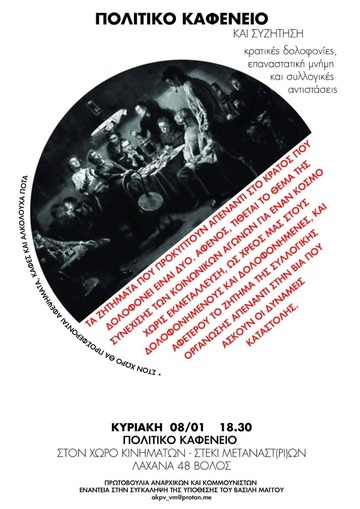 Πολιτικό καφενείο - Συζητηση με θέμα τις κρατικές δολοφονίες, την επαναστατική μνήμη και τις συλλογικές αντιστάσεις.