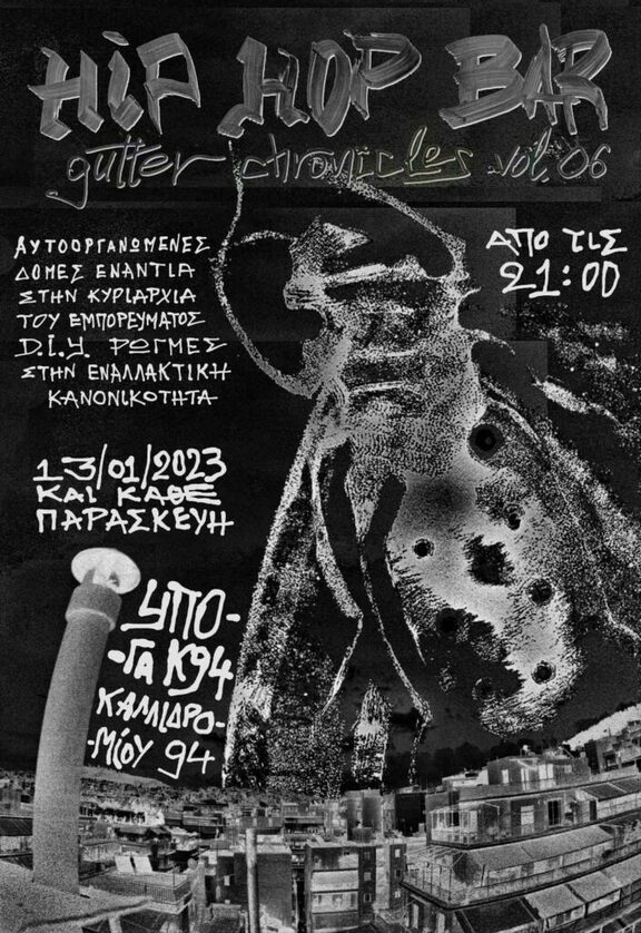 Αύριο 13/1 απ' τις 9μμ και μετά, το 2ο χιπχοπ μπαρ της χρονιάς και το 6ο συνολικά ως τώρα. Χωρίς πελάτες και σερβιτόρους, χωρίς τζίρους και χορηγούς, χωρίς τιμοκαταλόγους και Ζ. Από και για την αυτοοργανωμένη σκηνή.