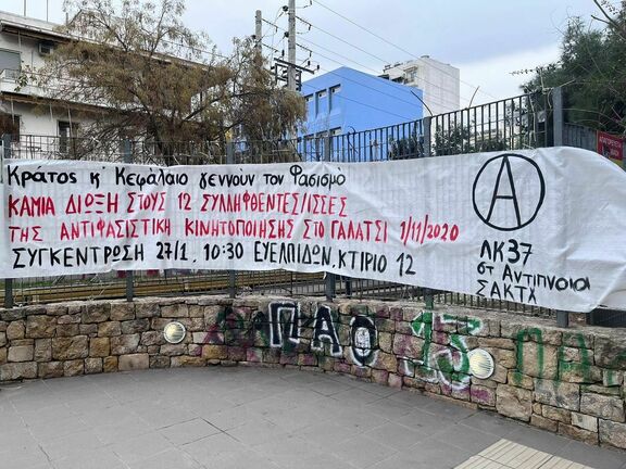 Την Παρασκευή 27 Ιανουαρίου έχει οριστεί η δίκη των συλληφθέντων από την αντικρατική-αντιφασιστική κινητοποίηση στο Γαλάτσι την 1η Νοεμβρίου 2020 που δέχτηκε την ακραία σε βιαιότητα κατασταλτική επίθεση από διμοιρίες ΜΑΤ, ΟΠΚΕ και ΔΡΑΣΗ. Το αποτέλεσμα της επίθεσης αυτής ήταν ο τραυματισμός πολλών διαδηλωτών, η σύλληψη 12 εξ αυτών ανάμεσά τους και των πιο σοβαρά τραυματιών (με ανοιγμένα κεφάλια και σπασμένα χέρια) και ένα βαρύ, ολότελα στημένο κατηγορητήριο σε βάρος τους.