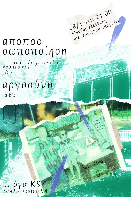 Το Σάββατο 28/01/2023 τα πρότζεκτ αποπροσωποποίηση και αργοσύνη ταξιδεύουν μέχρι την υπόγα, για να στήσουμε μαζί ένα diy χιπχοπ λάιβ.