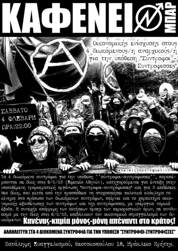 Καφενείο/Μπάρ οικονομικής ενίσχυσης στους 4 διωκόμενους/η αναρχικούς/ή για την υπόθεση 'Σύντροφοι -Συντρόφισσες'