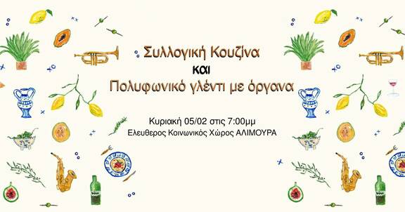 Την Κυριακή 5 Φλεβάρη από τις 7μ.μ. θα υπάρχει συλλογική κουζίνα στον Ε.Κ.Χ. Αλιμούρα και στις 9μ.μ. θα ξεκινήσει πολυφωνικό γλέντι με το Αυτοοργανωμένο Πολυφωνικό Ασκέρι. Σας περιμένουμε!