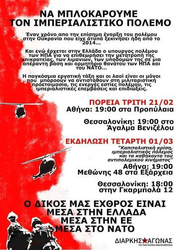 Τρίτη 21 Φλεβάρη | Αντιπολεμικές/ αντιιμπεριαλιστικές διαδηλώσεις: