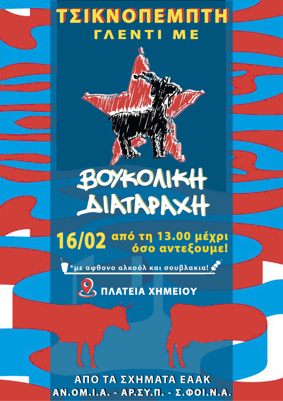 16/2 Τσικνιζουμε και γλεντάμε στους ρυθμούς της Βουκολικης από τη 13:00 μέχρι όσο αντέξουμε