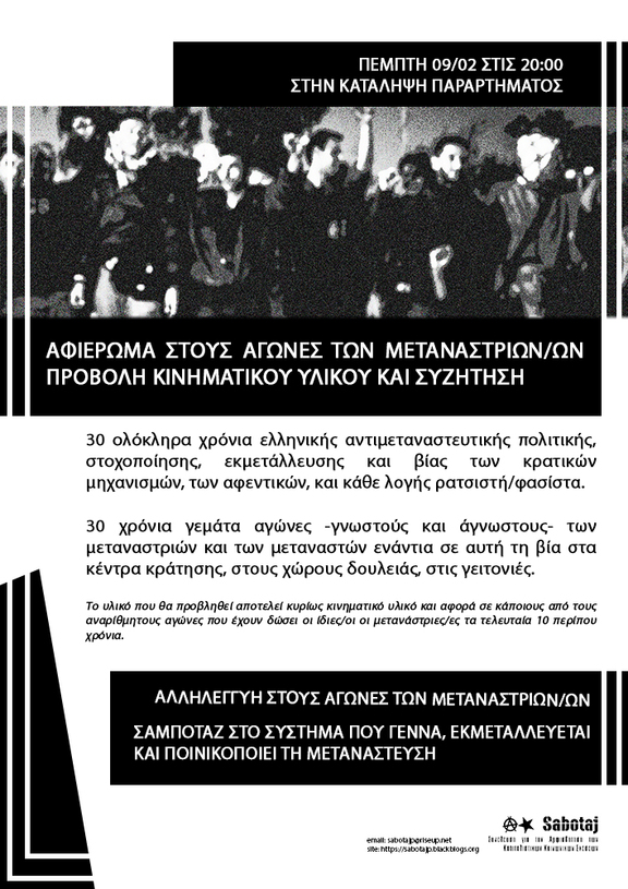 Αφιέρωμα στους αγώνες των μεταναστών/ριών - Προβολή κινηματικού υλικού και Συζήτηση