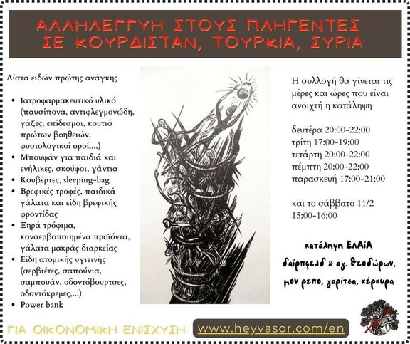 Αλληλεγγύη στους πληγέντες από τον σεισμό σε Κουρδιστάν, Τουρκία, Συρία