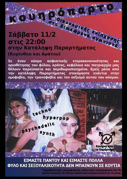 Το Σάββατο 11/2 από τις 22:00 στην Κατάληψη Παραρτήματος στην Πάτρα.