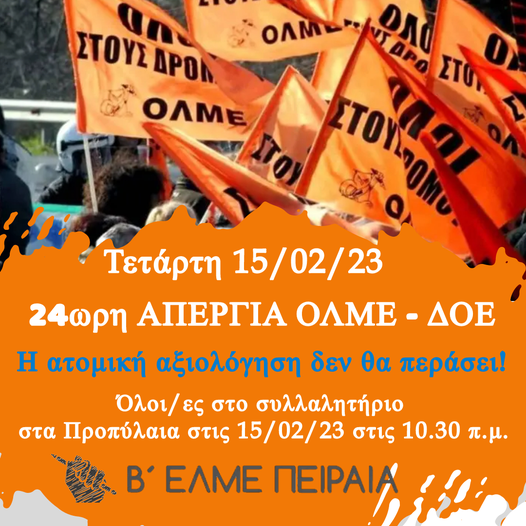 Τετάρτη 15 Φεβρουαρίου 2023 ώρα 10:30 ΟΛΟΙ ΚΑΤΩ για ΣΥΝΕΧΙΣΗ - ΚΛΙΜΑΚΩΣΗ του ΑΓΩΝΑ ΜΕΧΡΙ ΤΗ ΝΙΚΗ!!!