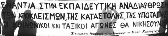 Μέσα σε συνθήκες βαθιάς και διαρκώς κλιμακούμενης οικονομικής και κοινωνικής κρίσης, το κρατικό καπιταλιστικό σύστημα επιταχύνει την αναδιάρθρωση που βάζει στο στόχαστρο κάθε έκφανση της κοινωνικής ζωής, απαξιώνοντας βασικές κοινωνικές ανάγκες, την εργασία, την υγεία, την παιδεία. Ειδικά, η εκπαιδευτική αναδιάρθρωση στα πρότυπα των αξιών της κυριαρχίας, της καθυπόταξης, του κοινωνικού ελέγχου, του αποκλεισμού των φτωχότερων στρωμάτων και της ευθυγράμμισή της με τις επιταγές της αγοράς αποτελεί διακαή πόθο της εξουσίας. Η σημερινή πολιτική διαχείριση, πατώντας πάνω στο έδαφος που άνοιξε η προηγούμενη διακυβέρνηση ΣΥΡΙΖΑ, κατήργησε το πανεπιστημιακό άσυλο, προώθησε και ψήφισε μια σειρά νόμων που μόνο στόχο έχουν την ιδιωτικοποίηση και εμπορευματοποίηση της δημόσιας παιδείας, τη διάλυση των εργασιακών δικαιωμάτων των εκπαιδευτικών, την ένταση των ταξικών αποκλεισμών, την καταστολή, την πειθάρχηση και την υποταγή μαθητών, φοιτητών και εκπαιδευτικών στις επιταγές του συστήματος.