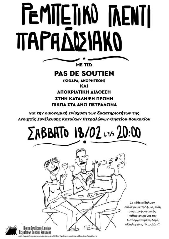 Ρεμπέτικο και παραδοσιακό γλέντι με ζωντανή μουσική / Σάββατο 18 Φεβρουαρίου / 8μμ / Κατάληψη πρώην ΠΙΚΠΑ