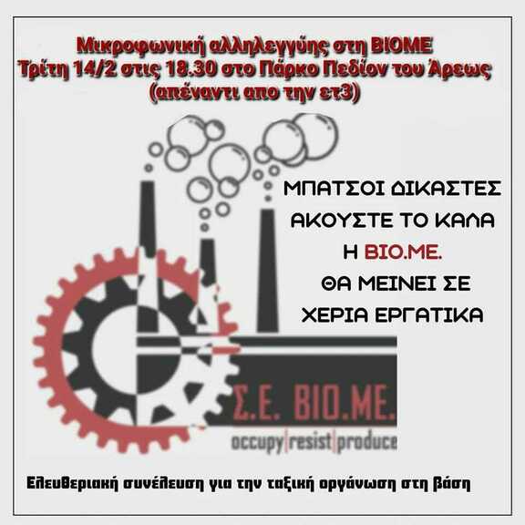 ΑΛΛΗΛΕΓΓΥΗ ΣΤΟΝ ΑΓΩΝΑ ΤΟΥ ΑΥΤΟΔΙΑΧΕΙΡΙΖΟΜΕΝΟΥ ΕΡΓΟΣΤΑΣΙΟΥ ΤΗΣ ΒΙΟΜΕ