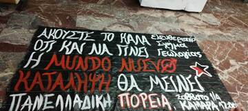 Υπάρχει μία κοινή πολιτική γραμμή που συνδέει το καπιταλιστικό έγκλημα στα Τέμπη, το διαλυμένο ΕΣΥ και την ιδιωτικοποίηση της Υγείας, τους ταξικούς φραγμούς στην Παιδεία, την αντεργατική και αντισυνδικαλιστική νομοθεσία των τελευταίων κυβερνήσεων, την αναβάθμιση του τρομονόμου και τον νόμο για τον περιορισμό των διαδηλώσεων, το νομοθετικό αβαντάρισμα της λεηλασίας του περιβάλλοντος με τις εκκενώσεις των καταλήψεων και την στοχοποίηση αγωνιστών και αγωνιστριών.
