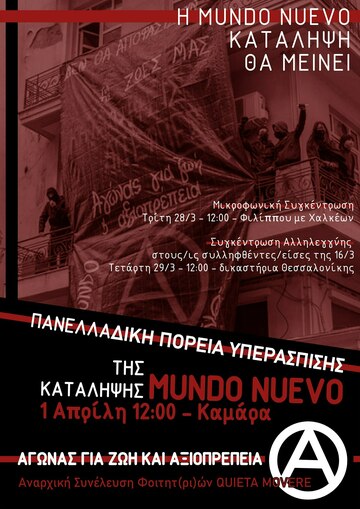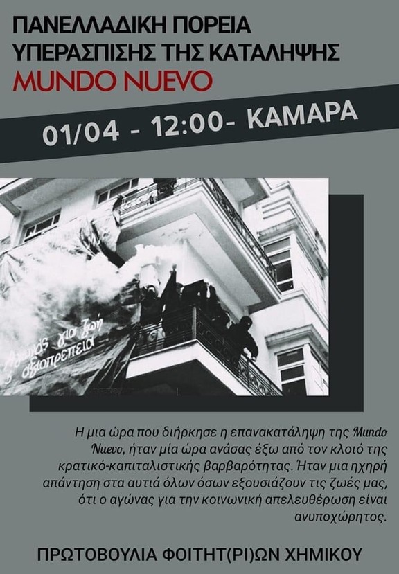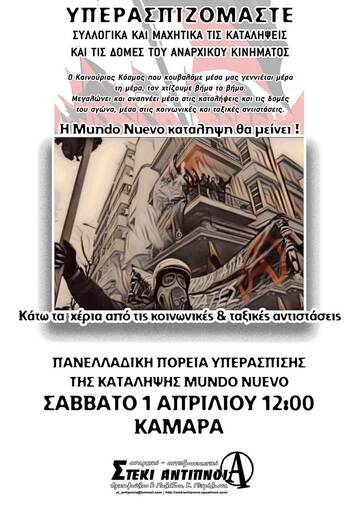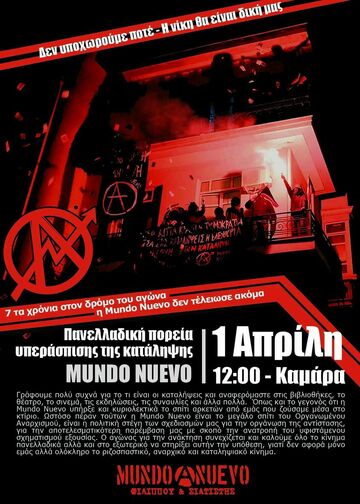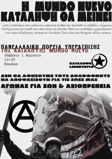 Πανελλαδική πορεία υπεράσπισης της κατάληψης Mundo Nuevo: Σάββατο 1η Απρίλη, Καμάρα, 12.00