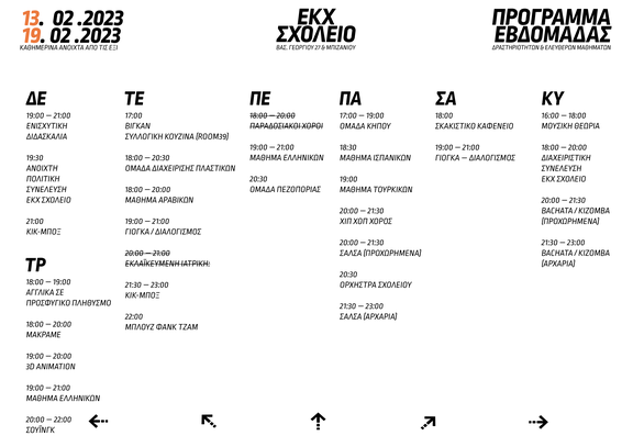 Η εβδομάδα 13-19 Φεβρουαρίου 2023 στον Ελεύθερο Κοινωνικό Χώρο Σχολείο.