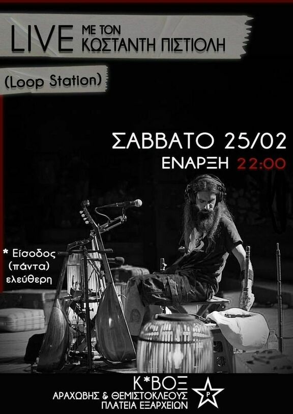 Live με τον Κωσταντή Πιστιόλη (Loop Station) στο Κ*ΒΟΞ για δικαστικά έξοδα συντρόφων/ισσών του Ρουβίκωνα