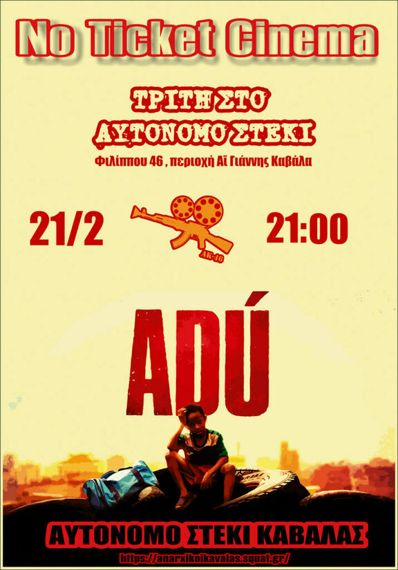 ΠΡΟΒΟΛΗ ΤΗΣ ΤΑΙΝΙΑΣ "ADU", ΤΡΙΤΗ 21/02/2023, ΣΤΙΣ 21:00, ΣΤΟ ΑΥΤΟΝΟΜΟ ΣΤΕΚΙ ΚΑΒΑΛΑΣ