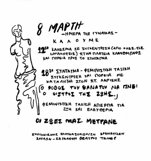 Καλέσματα: Τετάρτη 8 Μάρτη - 12:00 Χαυτεία (Αιόλου και Σταδίου) - 18:30 Σύνταγμα.
