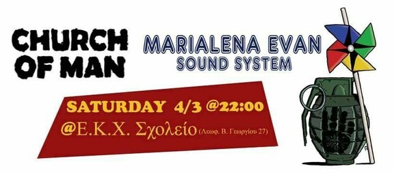 Οι Church Of Man, τo urban rock συγκρότημα από τη Θεσσαλονίκη, μαζί με τη Marialena Evan (Sound System) ζωντανά στη "σκηνή" του Ε.Κ.Χ. Σχολείο για την οικονομική ενίσχυση του χώρου.