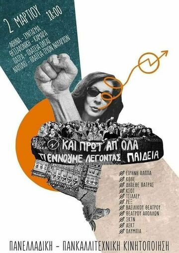 Οι αγωνιζόμενοι καλλιτέχνες που αυτή την περίοδο βρίσκονται στους δρόμους, καταλαμβάνουν θέατρα και παλεύουν για την υπεράσπιση της ζωής, της τέχνης και της εργασίας τους, καλούν σε πανκαλλιτεχνική κινητοποίηση την Πέμπτη 2/3. Ωστόσο, μετά το τραγικό συμβάν στα Τέμπη και τη θυσία τόσων ζωών στον βωμό των ιδιωτικοποιήσεων και τους κέρδους των πολυεθνικών, ο χαρακτήρας της κινητοποίησης αλλάζει. Παρακάτω παραθέτουμε το κάλεσμα για την κινητοποίηση.