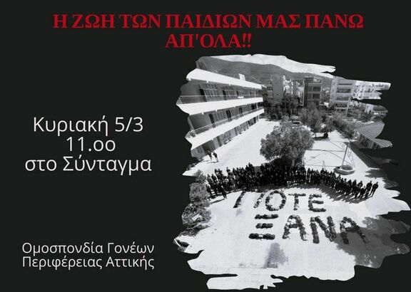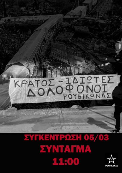 Όλοι στο Σύνταγμα την Κυριακή 5 Μάρτη στις 11πμ, στην διαδήλωση για το έγκλημα στα Τέμπη.