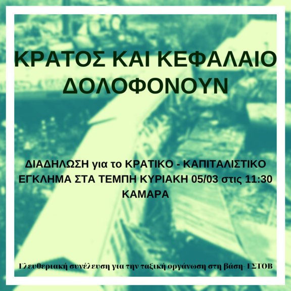 ΔΙΑΔΗΛΩΣΗ για το ΚΡΑΤΙΚΟ - ΚΑΠΙΤΑΛΙΣΤΙΚΟ ΕΓΚΛΗΜΑ ΣΤΑ ΤΕΜΠΗ ΚΥΡΙΑΚΗ 05/03 στις 11:30 ΚΑΜΑΡΑ