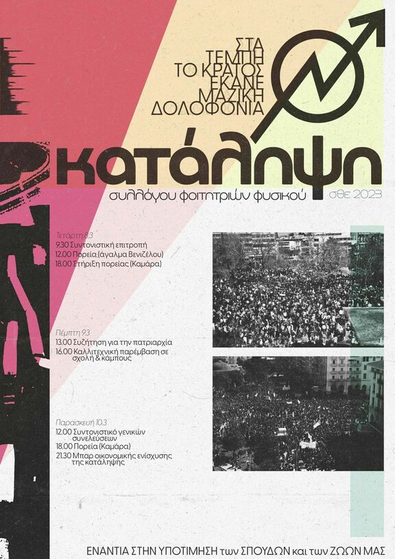 Διαδήλωση ενάντια στο κρατικό-καπιταλιστικο έγκλημα στα Τέμπη Παρασκευή 10/3 στις 6μμ Καμάρα