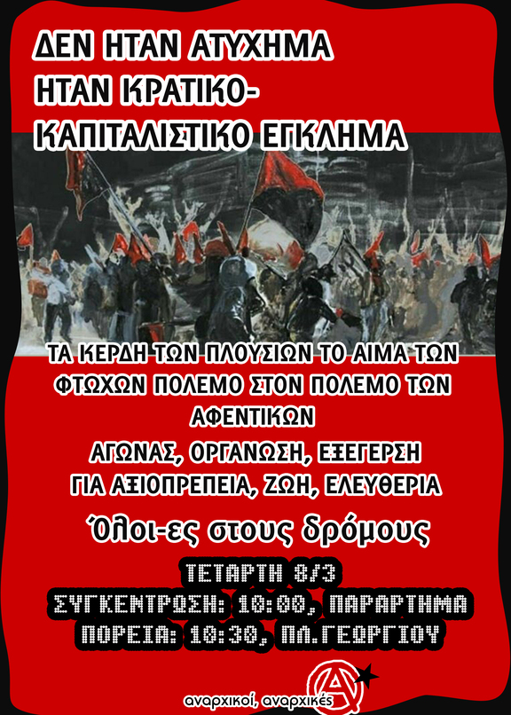 ΚΑΛΕΣΜΑ ΣΤΗΝ ΑΠΕΡΓΙΑ 8ΗΣ ΜΑΡΤΗ: 10:00 ΠΑΡΑΡΤΗΜΑ | 10:30 Π.Μ., ΠΛ.ΓΕΩΡΓΙΟΥ