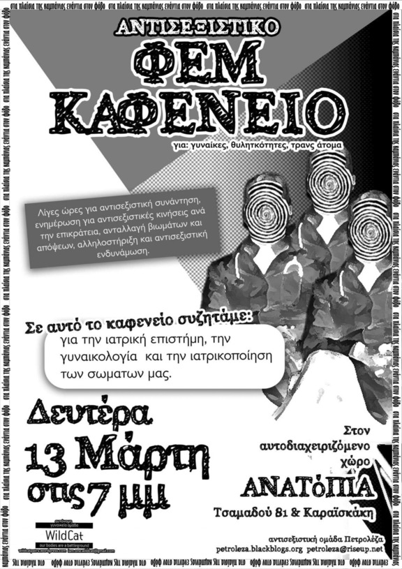 …στον αυτοδιαχειριζόμενο χώρο ΑΝΑΤόΠΙΑ από την αυτόνομη γυναικεία ομάδα Wildcat και την αντισεξιστική συνέλευση Πετρολέζα (στα πλαίσια την καμπάνιας «ενάντια στον φόβο»).