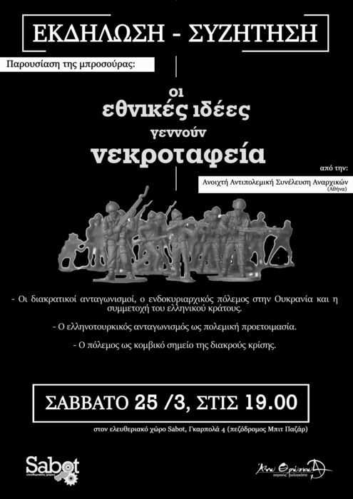 Εκδήλωση-Παρουσίαση της μπροσούρας της Ανοιχτής Αντιπολεμικής Συνέλευσης Αναρχικών (Αθήνα):