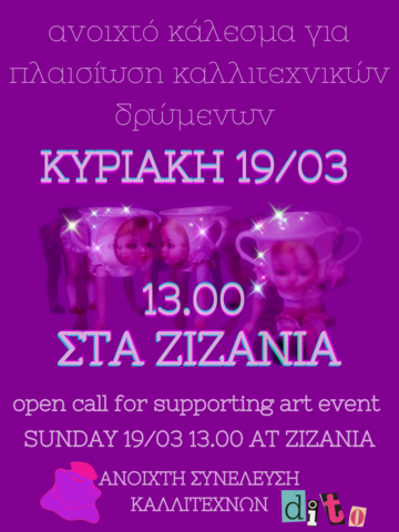 Είμαστε μία ομάδα καλλιτεχνών που έχουμε ξεκινήσει τη διαδικασία σύστασης μίας συνέλευσης με στόχο τη μεταξύ μας έκφραση, επικοινωνία και ανταλλαγή ιδεών, και σε δεύτερο επίπεδο την οργάνωση διαφόρων DIY καλλιτεχνικών δράσεων. Προσπαθούμε να δημιουργήσουμε ένα χώρο στον οποίο θα μπορούμε να μοιραζόμαστε ελεύθερα και με ασφάλεια την τέχνη μας απαλλαγμένη από εξουσιαστικές σχέσεις και από τους όρους που μας επιβάλει η εμπορευματοποίησή της.