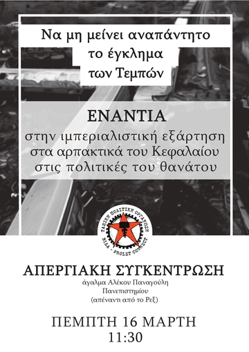 τοποθέτηση για το κρατικό - καπιταλιστικό έγκλημα στα Τέμπη, τον συνολικότερο αγώνα ενάντια στην υποτίμηση της ζωής μας και κάλεσμα σε συμμετοχή στην γενική απεργία και την συγκέντρωση της 16ης Μάρτη 2023