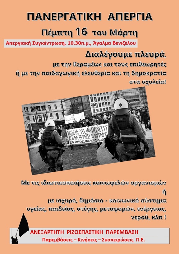 Απεργιακή πορεία: Πέμπτη 16/03 στις 11:00, Άγαλμα Βενιζέλου
