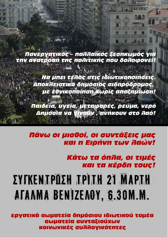 Συγκέντρωση ενάντια στην ακρίβεια, τις ιδιωτικοποιήσεις, τον αυταρχισμό