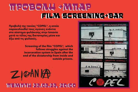 COPEL is a documentary filmed in 2017 by members of the Coordination of Prisoners in Struggle--COPEL. The film follows struggles against the incarceration system in Spain after the end of the dictatorship from inside and outside prisons. It matches personal experiences of people involved with collective tactics, histories, and memories of their struggle.