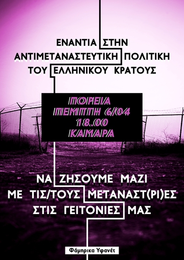 WESUPPORT THE CALL FOR A MARCH OF STOP WAR ON MIGRANTS ON THURSDAY 6/4 IN KAMARA,18:00