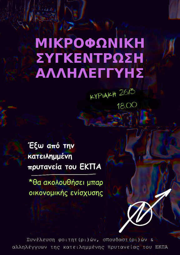 Συγκέντρωση Αλληλεγγύης & μπαρ οικονομικής ενίσχυσης της Κατάληψης Πρυτανείας ΕΚΠΑ