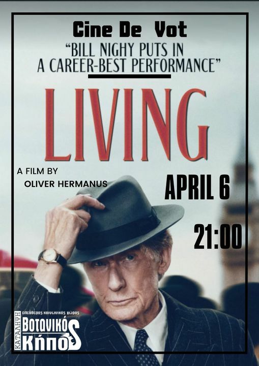 Tο Living του Όλιβερ Χερμάνους είναι έργο με βαθύ λυρισμό και συναισθηματική ακρίβεια, δηλωτικό μιας πολύ βρετανικής έκφανσης της συναισθηματικής μοναξιάς. Πρόκειται για διασκευή του παραγνωρισμένου (έναντι άλλων στη φιλμογραφία του, και όχι τόσο επειδή αδικήθηκε στην εποχή του) αριστουργήματος του Ακίρα Κουροσάβα, Ikiru (Καταδικασμένος), 1952, που με τη σειρά του ήταν μεταφορά του Θανάτου του Ιβάν Ίλιτς του Λέον Τολστόι. Ο νομπελίστας συγγραφέας και εξαιρετικός λογοτέχνης Καζούο Ισιγκούρο, που έχει μεγαλώσει και με τις δύο κουλτούρες, όντας γεννημένος στην Ιαπωνία αλλά μεγαλωμένος στην Αγγλία, αναλαμβάνει χρέη σεναριογράφου και μεταφέρει την ιστορία του αριστουργήματος του Κουροσάβα στο γκρίζο, σκυθρωπό μεταπολεμικό Λονδίνο της δεκαετίας του '50, όπου ένας αυστηρός, αγέλαστος μεσήλικας, ο οποίος τηρεί όλη την πόζα του άψογου τζέντλεμαν και υπηρετεί πιστά την αυστηρή και άκαμπτη συχνά γραφειοκρατία που χαρακτηρίζει την εποχή, μαθαίνει ότι του απομένουν λίγοι μήνες ζωής και η υπηρεσία (υπηρέτηση) αυτή μπαίνει σε πλαίσια αναθεώρησης.