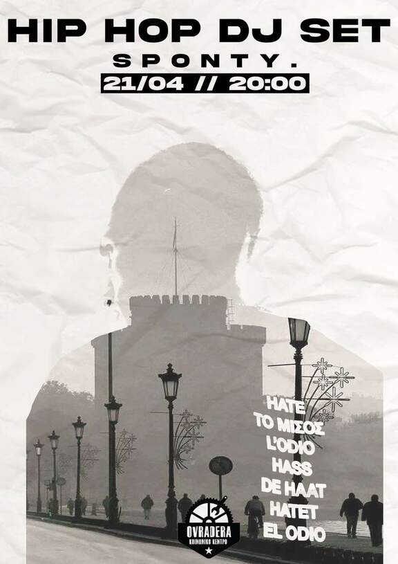 Παρασκευή 21 Απριλίου 20:00 στο κοινωνικό κέντρο Ovradera Hip hop και DJ set με τον Sponty