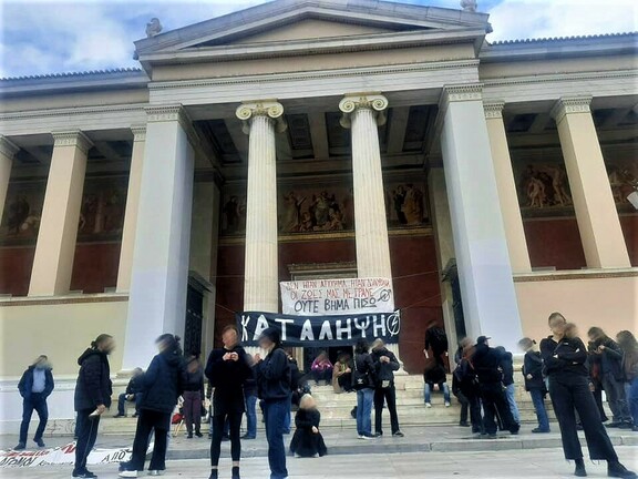 Το πρωί της Δευτέρας 13/3 πραγματοποιήθηκε από την "Κίνηση Φοιτητών/τριών, Σπουδαστριών/ών για την ελευθεριακή οργάνωση στην βάση" κατάληψη της Πρυτανείας του ΕΚΠΑ ενάντια στην υποβάθμιση των ζωών μας, με αιχμές το κρατικό - καπιταλιστικό έγκλημα στα Τέμπη, το ΠΔ85 σε βάρος των καλλιτεχνών και τον αντιεκπαιδευτικό νόμο 4777 για τα πανεπιστήμια, στο πλαίσιο της γενικής αναδιάρθρωσης της εκπαίδευσης. Αυτή η κίνηση γίνεται εν μέσω καθημερινών κινητοποιήσεων, με τη συμμετοχή χιλιάδων ανθρώπων, που διαδηλώνουν ενάντια στο σύστημα που εξαθλιώνει και δολοφονεί.