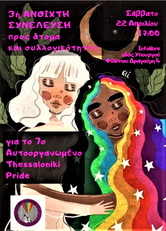 Οι συνελεύσεις μας παραμένουν ανοιχτές και σε όσες, όσες και όσους δεν παρακολούθησαν τις δύο πρώτες. Στην 3η ανοιχτή συνέλευση για το 7ο Αυτοοργανωμένο Thessaloniki Pride συνεχίζουμε: