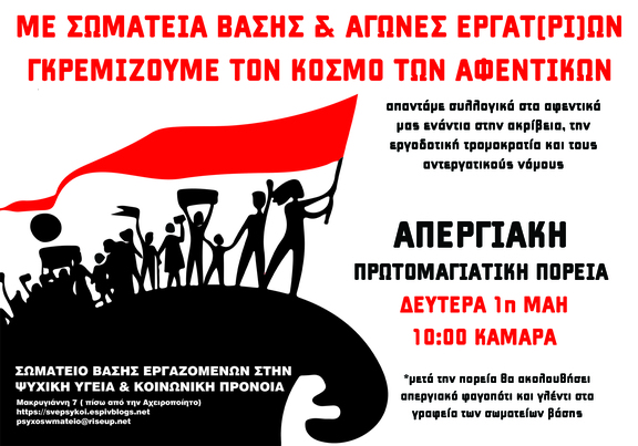Όλοι/Όλες στις απεργιακές διαδηλώσεις της Εργατικής Πρωτομαγιάς!
