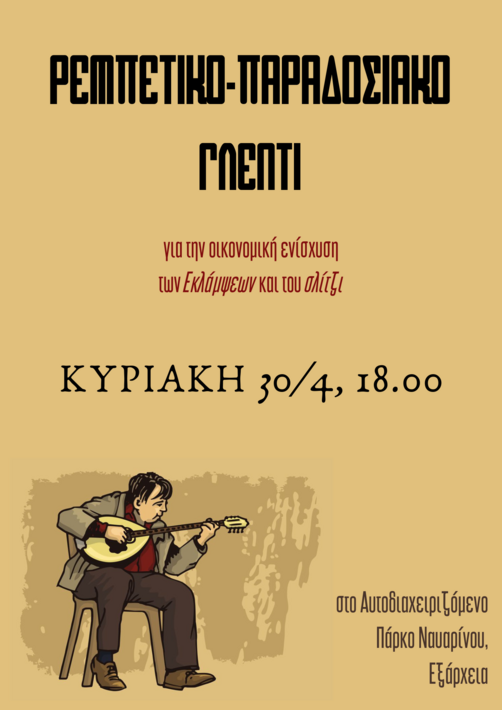 Ρεμπέτικο-παραδοσιακό γλέντι για την οικονομική ενίσχυση των Εκλάμψεων και του σλίτζι, την Κυριακή στο πάρκο Ναυαρίνου.