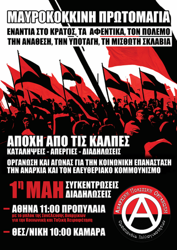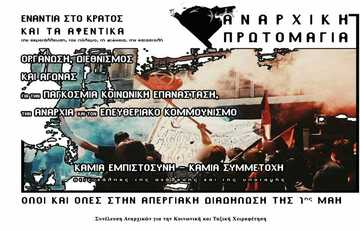 137 χρόνια μετά την εξέγερση των εργατών στο Σικάγο και την άγρια απεργία τον Μάη του 1886 τίποτα δεν έχει τελειώσει. Ο πόλεμος μεταξύ κυρίαρχων και εκμεταλλευόμενων εξακολουθεί να υφίσταται σε ολόκληρο τον πλανήτη, που αποτελεί ένα διαρκές πεδίο σύγκρουσης όπου θα επιβιώσει ή το απάνθρωπο κρατικό και καπιταλιστικό σύστημα ή οι κοινωνίες. Από τη μία η Εξουσία και όσα αυτή φέρει- ιεραρχία, ανισότητα, εκμετάλλευση και καταπίεση ανθρώπου από άνθρωπο, λεηλασία της φύσης, φτώχεια, αποκλεισμοί, δολοφονίες, αρρώστιες, πόλεμοι -και από την άλλη, η Κοινωνία που ασφυκτιά υπό το βάρος της βαρβαρότητας της κυριαρχίας και όλοι όσοι αντιστέκονται στη δυστοπία που επιχειρείται να επιβληθεί απ' άκρη σε άκρη αυτής της γης και παλεύουν για τη δημιουργία ενός κόσμου Ελευθερίας, Ισότητας, Αλληλεγγύης, ενός κόσμου που θα χωρά πολλούς κόσμους.
