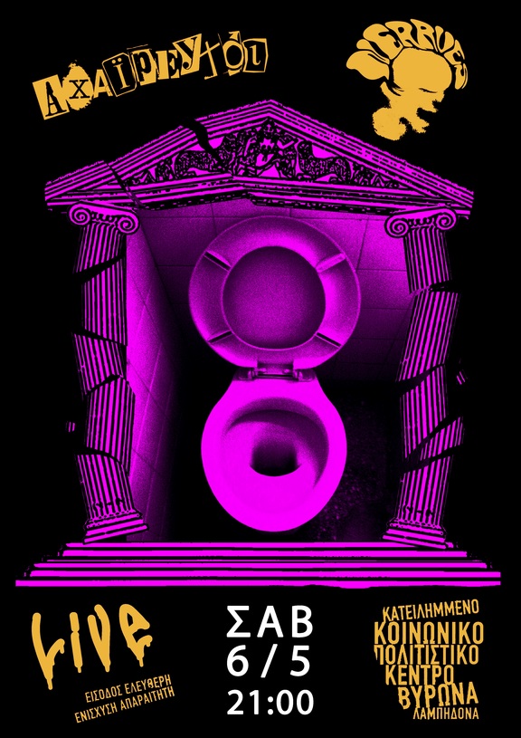 Αυτό το Σάββατο 6 Μαΐου, το Κοινωνικό Πολιτιστικό Κέντρο διοργανώνει live με τους Αχαΐρευτους. Ώρα έναρξης 9 μμ, είσοδος όπως πάντα, ελεύθερη