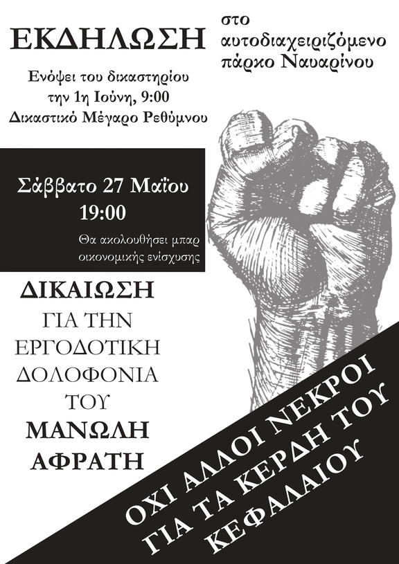 Δικαίωση για την εργοδοτική δολοφονία του Μ. Αφράτη