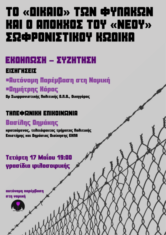 Εκδήλωση Το "Δίκαιο" των φυλακών & ο απόηχος του "Νέου" Σωφρονιστικού Κώδικα