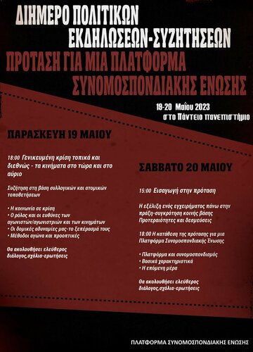 ΔΙΗΜΕΡΟ ΠΟΛΙΤΙΚΩΝ ΕΚΔΗΛΩΣΕΩΝ-ΣΥΖΗΤΗΣΕΩΝ ΠΡΟΤΑΣΗ ΓΙΑ ΜΙΑ ΠΛΑΤΦΟΡΜΑ ΣΥΝΟΜΟΣΠΟΝΔΙΑΚΗΣ ΕΝΩΣΗΣ