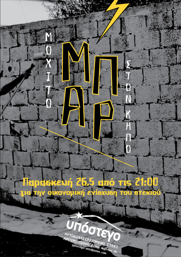 Ένα πρώτο άνοιγμα με σκοπό μεταξύ άλλων και για την οικονομική ενίσχυση του στεκιού θα γίνει την Παρασκευή 27.5 από τις 21:00. Στον κήπο με μοχίτο.