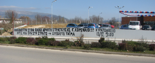 Στις 13 Δεκέμβρη έχει προσδιοριστεί το στρατοδικείο του συντρόφου Γεράσιμου Κορωναίου που σχετίζεται με τη δίωξή του από στρατιωτικό εισαγγελέα και αφορά την άρνησή του να καταταγεί στον ελληνικό στρατό ως ολικός αρνητής στράτευσης. Για την υπόθεση του συντρόφου έχει προγραμματιστεί και οργανώνεται αντιμιλιταριστικό διήμερο στα Γιάννενα η κορύφωση του οποίου θα περιλαμβάνει συγκέντρωση στο στρατοδικείο Ιωαννίνων την Τρίτη 13 Δεκέμβρη.