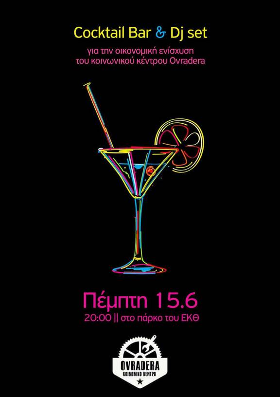 Cocktail bar + DJ Set οικονομικής ενίσχυσης του Κοινωνικού Κέντρου Ovradera Πέμπτη 15/6, στις 20:00 στο Πάρκο του ΕΚΘ